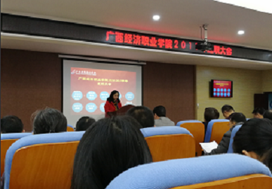 为了响应学院发展总体目标,迎接学院建校10周年到来之际,广西经济职业学院2016-2017学年述职大会在学院竞合楼召开,各部门领导依次进行了部门工作汇报以及长远发展规划总结。特别是针对教学改革发展各部门都进行了深刻的交流与探讨,给出了实质性的建议。而教务处潘峻处长在会上也针对教务处本学年重点工作内容及教学科研上取得的优异成绩进行了总结陈述,并对未来教学改革规划做出指示,其中包括:一、要增强校企合作,加强实践教学;二、增加重点专业建设,提升学院办学水平;三、以教育厅为牵头,完善教学质量诊断体系建设;四、加强校内校外实训基地建设,促进教学环境改革。