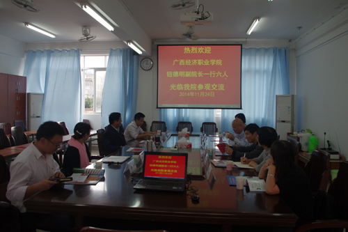 首先,与工商学院的学院领导、教务处处长及工商企业管理专业的教师代表进行了座谈交流,钮德明副院长就我院工商企业管理专业的专业建设做了简单的介绍,工商学院的教务处韦胜强处长针对他们的工商企业管理专业的专业建设的亮点——术科教学进行的阐述。