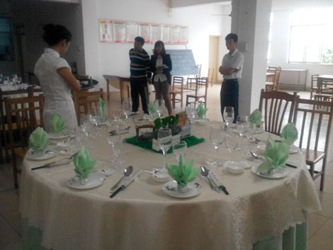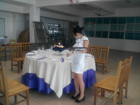 2015年广西职业院校技能大赛启动于2015年3月17日,比赛时间是4月25日——5月6日,我院根据各专业的实际情况,申报了五个参赛项目(中餐主题宴会、会计技能、英语技能、烹饪、礼仪展示),为了做好本次技能比赛的赛前准备,让选手在比赛中赛出水平赛出风格,各参赛队员在指导老师的带领下正在进行紧张的训练中。2015年4月25日下午,学院党委书记张德胜老师、教务处人员、经贸旅游系主任及相关老师等人员对中餐主题宴会项目进行了赛前检验,并提出了一定的整改意见。