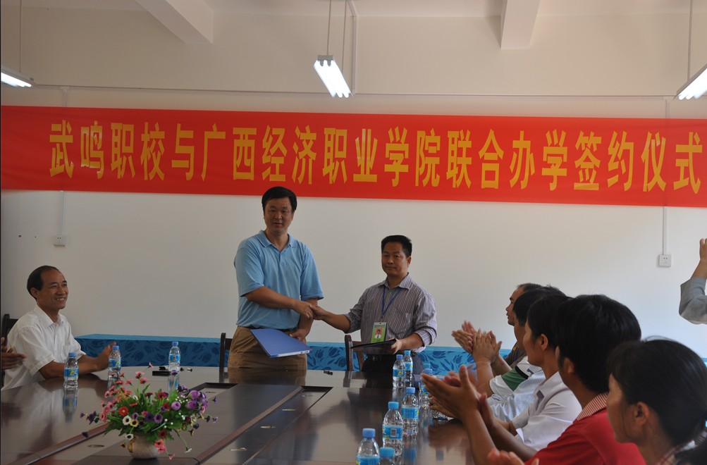 “院校的生存与发展,靠的是切入市场,脚踏实地!”学院在设置自己发展战略目标上,不仅朝前看,更加注重眼前的实效。9月28日,广西经济职业学院与武鸣职业技术学校举行联合办学签字暨“广西经济职业学院与武鸣职业技术学校联合办学基地”揭牌仪式在武鸣职业技术学校隆重举行,学院院长肖开宁,学院党委书记、常务副院长张赟,院长助理林炳宁,学院党委副书记、院长助理叶继红等领导参加了仪式活动。武鸣职业技术学校主持了揭牌仪式,实质性拉开了校校合作办学的新序幕。