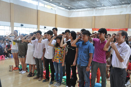 在学院党委书记张赟、学工处处长陆志刚的带领下,经职院学生党员们在党旗下宣誓!高亢嘹亮的誓言声响彻会场大厅,震撼了每一位学子的心灵!