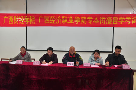 会上,学院副院长钮德明向学生解释了学院在13级学生中将要进行的“专本衔接”自考班中的一些政策支持,教学上的安排及部署。会计金融系副主任王冬梅也传达了学院教务处关于专本衔接自考的建议及13级学生参加社会实践的通知精神。广西财经学院继续教学学院考试培训部主任廖声国在会上就为什么要参加自考、为什么选择财经学院、自考中会遇到的问题等向学生进行了讲解与动员。会计金融系11级学生陈丽凤和经贸系12学生施福玉也结合自己在专本衔接自考学习中的亲身体验和大家分享了自己的学习体会。