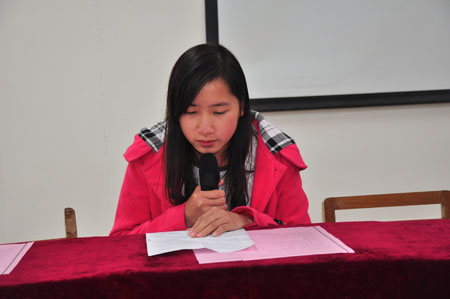 会计金融系11级学生陈丽凤在会上介绍自己在自考学习中的体会