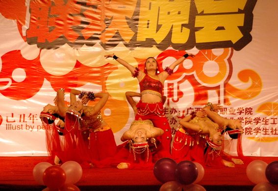 金鼠辞旧,金牛贺岁,一台由各社团精致组织,集歌舞、小品、时装表演、街舞等丰富节目为一堂的文艺晚会在学院礼堂热闹上演,全院师生员工欢聚一堂共庆新年。我系参加漫画社团、街舞社团、服装社团、DIY社团以及文艺队的十几名同学在晚会上献才献艺,将艺术设计系独有的创造力带入晚会的节目编排中,充分发挥我系学生在社团的积极性和创造性。其中由我系学生黄芸芸带领服装社的姐妹们穿着自己设计的晚礼服登台表演成为此次晚会的亮点。