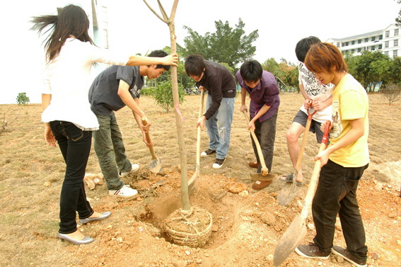2009年3月12日,学院组织全院师生开展植树绿化活动,我系师生积极参与其中,同心协力共同种下3棵常青树,为改造校园美化家园奉献一份力量。同时我系发挥自身特色,收集废弃树根进行废料改造,形成独特的艺术品。在此次活动中,我系还为为绿化校园制作的40块树名牌,10块温馨提示牌。为校园植被标上名字,开阔学生眼界;为绿地草坪保驾护航,献上一份绵薄之力。