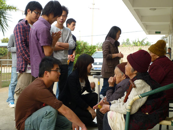 为了弘扬雷锋精神,加强学生尊老敬老的传统美德教育,在全社会形成尊老爱老助老的良好道德风尚,2010年3月27日下午3点,艺术设计系学生会成员在主席刘甲达的带领下,手提水果来到了园区社会福利院进行慰问。