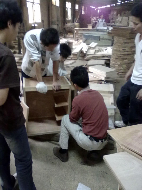 本学期第3-5周是我系08级室内设计的家具设计课程,为了更好的将课程内容与市场需求相结合,推动我系“产学结合”的发展进程,我系与南宁市富城家具有限公司初步达成合作协议,将家具课和家具厂的制作流程相结合,合作初期我系选派6名同学到家具厂进行为期一周实地操作和学习。