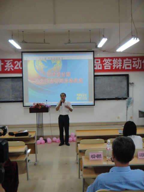 2011年9月20日,我艺术设计系09级毕业班毕业作品答辩启动仪式正式开始,此次活动我们邀请了张赟副院长、叶继红院长助理、王冬梅主任、覃朗科长和建筑工程系副主任邓国胜前来参加,对于此次活动的开展,张赟副院长在会议上做了讲话于是支持和鼓励。