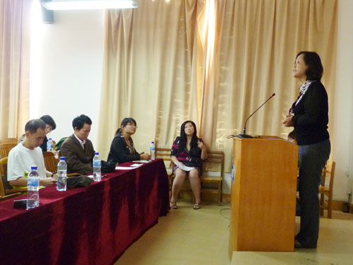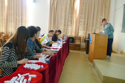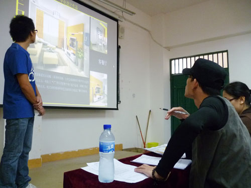 2011年11月28日至29日,由系部组织开展首届“艺术设计系毕业作品答辩”活动,此次活动邀请了广西机电职业学院的李永杰和赵朝弘教授,同时还邀请了尚古丰文化公司总经理粟永禄和迪赛伍图像设计有限公司的设计总监荷杰芝共同担当评委。答辩工作按专业不同分为两个部分,28日是装饰设计班进行答辩,29日是艺术设计班答辩。答辩流程分为三部分,首先,由学生对自己的作品进行5分钟的自诉,再由评委进行10分钟提问,最后,再由学生进行抽取专业问答题进行答辩。专家评委们通过对学生在答辩过程中的语言、仪表仪态和对专业知识的掌握情况进行评分。