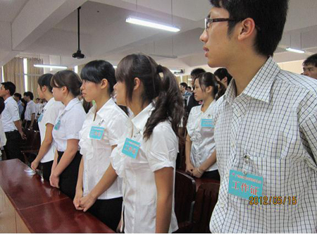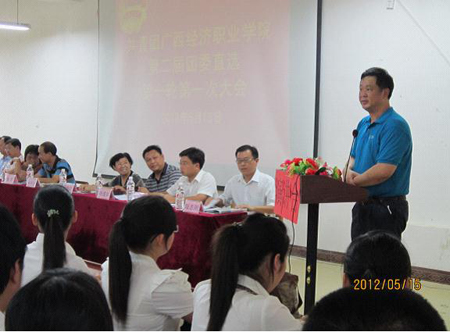 大会于14点30分正式开始,首会议由学工处处长陆志刚主持。首先院办副主任(党办负责人)杨盛如宣读了《关于筹备召开共青团广西经济职业学院委员会第二届团员代表大会的请示》的批复及《关于广西经济职业学院第二届团委委员直选候选人名单审查报告。紧接着是肖开宁院长就开展本次大会的意义做了重要讲话。会议议程有序地进行,45名候选人在逐一抽签完毕后,依次上台发表演讲,每人演讲3分钟。整个演讲过程,各个候选人都使出浑身解数,慷慨激昂,博得台下同学们一浪接一浪雷鸣般的掌声。演讲结束后,通过艺术设计系和会计金融系在场169名同学的投票以及院学生会纪检部全体成员的监票,共收回选票168张,经审查组当场验票后,整个投票过程公平、公正、有效,并将所有选票封好,存档。
