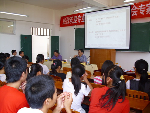 何逸奎副会长从16岁入行,从厨50年,曾在中国驻越南大使、中国驻法国大使馆官邸、中国驻西班牙大使馆执厨,也曾多次追随国家领导人出访为他们执厨。何副会长以其亲身经历告诫我们的学生,要想学好本领,就不要怕辛苦,并讲了“五多”,即要多看、多问、多做、多吃(偿)、多动脑筋。李俊华总经理也以他的自身经历告诉我们的学生,不管我们的起点在怎样,都要有一个人生职业规划,这样,我们的职业就不会盲目,我们的前景才光明。接下来并和学生互动,学生提出的很多问题都在他们那里得到了满意的答案。何副会长还为我系师生做的几道菜作出了精辟的点评。