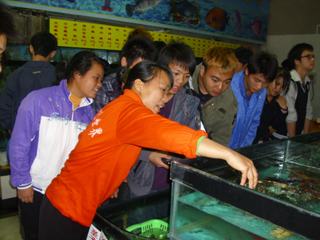 此次参观我系师生受到酒店方领导的热情接待,餐厅主管李部长专门为我系学生解说酒店的大堂布置和后堂中厨房区的管理流程。李部长首先带领同学们参观了酒店厨房区的炒锅区、上杂区、生猛海鲜区、卤水烧腊间和冷冻室,在参观过程中,李部长向同学们详细介绍了酒店厨房的情况、出菜的流程、头锅头灶的位置、厨房出菜的协调工作还有各炉灶设备的用处等。随后,李部长带领同学们参观了酒店的大堂和包间,学生被酒店包间内专业、华丽的摆设所深深吸引,同时酒店卫生干净整洁,器材摆放到位也让学生们留下深刻的印象。