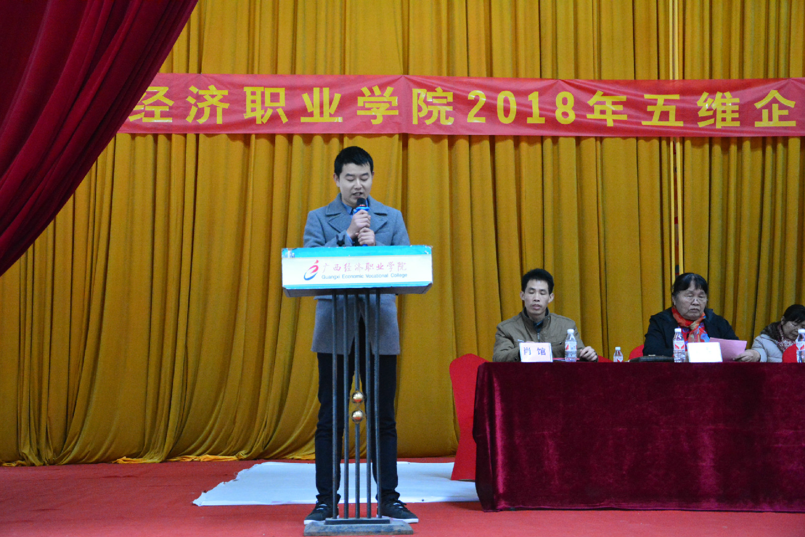 1月3日下午4:00,我院在综合楼三楼举行2018年社会认知与职业体验实习总结表彰大会,本次大会旨在对2018年社会实践期间的优秀带队老师及学生进行表彰。大会由学院副院长刘平主持,学院董事长肖开宁,院长陈俊伟,党委书记韦金能,常务副院长覃巧珍,院长助理潘峻,各处室、各系正副主任,学生工作处全体教师以及17级全体学生参加大会。