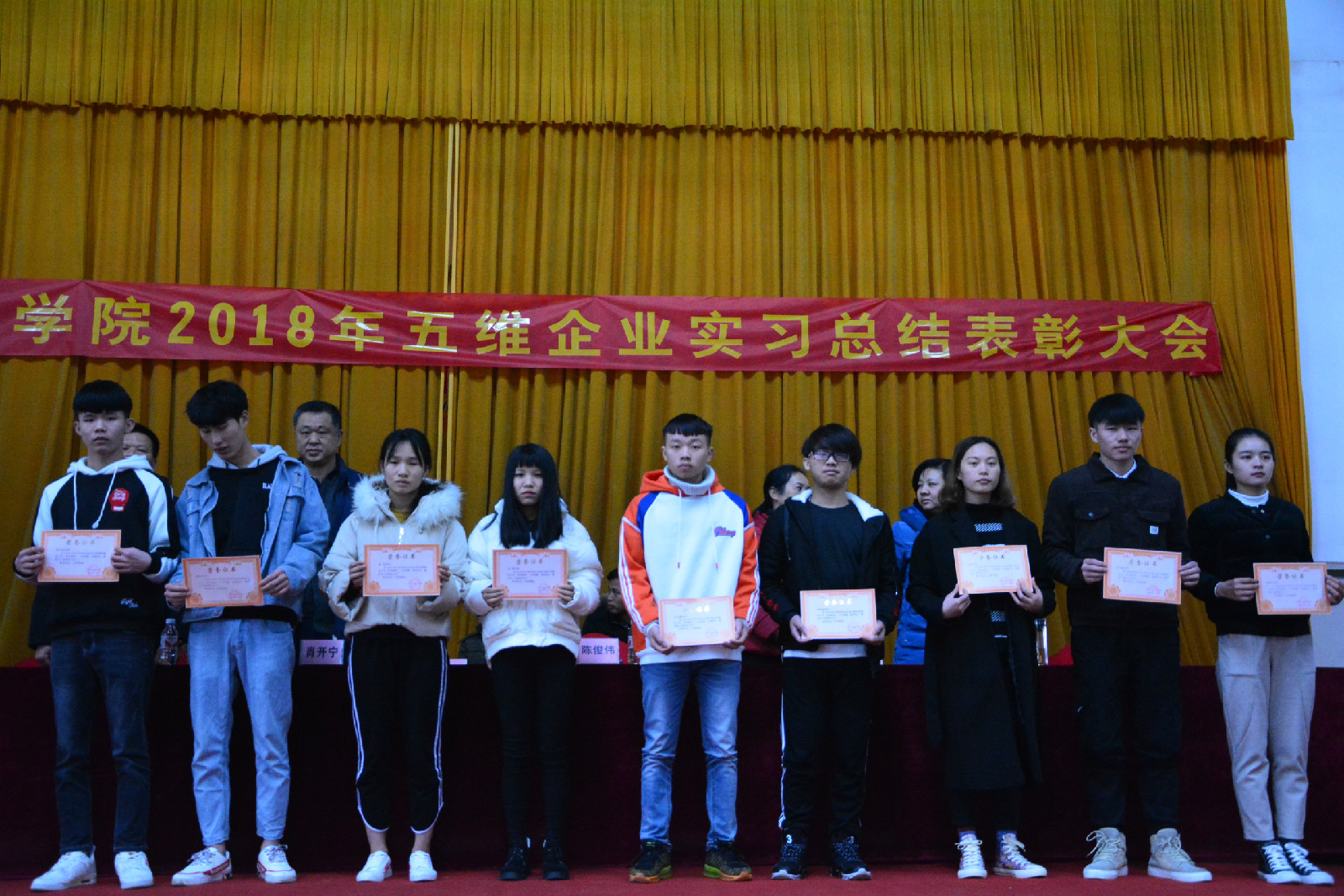 陈俊伟院长宣读《关于表彰2018年社会认知与职业体验实习(五维企业实习)优秀带队老师、优秀实习学生的决定》。