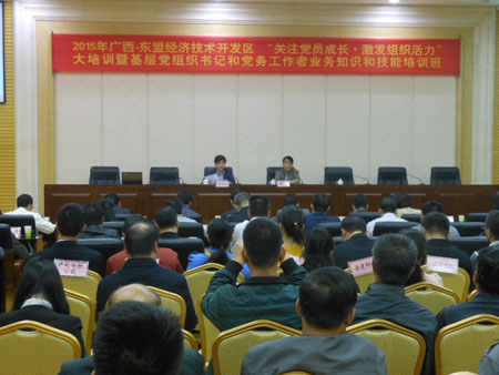 广西东盟经济开发区党工委委员、“两新”党工委书记黄焕作了开班动员。他简要总结了开发区今年党建工作的主要特点是:方向明,举措多,效果好。对下步党建工作提出四点要求:一是查帐单,心中有数。二是抓统筹,平衡发展。三是早谋划,有序推进。四是常督察,违规必纠。同时,对培训班提出了认真听,多思考,守纪律,多交流的要求。